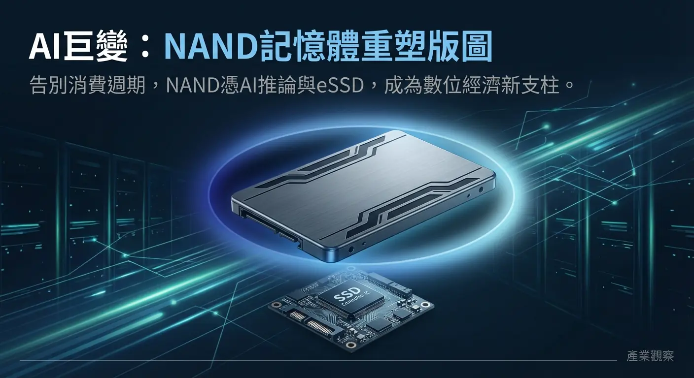 在過去幾十年裡,NAND快閃記憶體(以下簡稱NAND)一直被視為半導體產業中那個不太性感的表親。相較於其兄弟DRAM(動態隨機存取記憶體)在AI訓練伺服器中憑藉HBM(高頻寬記憶體)大放異彩,NAND似乎總與週期性強、利潤微薄的消費性電子產品,如智慧型手機和個人電腦,緊密相連。然而,一場由人工智慧引發的結構性變革正在悄然上演。當全球科技巨頭的戰場從AI模型的「訓練」轉向大規模的「推論」應用時,NAND正從幕後配角一躍成為舞台中央的主角。這場變革不僅重塑了記憶體市場的權力版圖,也為身處全球科技供應鏈關鍵位置的台灣,帶來了全新的機遇與挑戰。這是否意味著,投資者長期以來對NAND的偏見,即市場 fragmented(分散)、與AI關聯度低、過度依賴消費市場的看法,已經過時?NAND的黃金時代真的來臨了嗎?