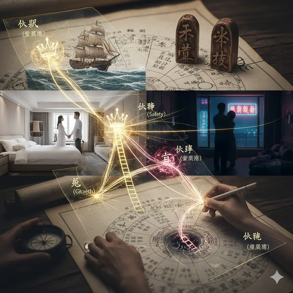 如果說八字是從能量層面告訴你:「這股火太旺了,金會被燒融(妻子受傷)」, 那麼紫微斗數就是從劇本層面告訴你:「夫妻宮(婚姻制度)的大門被子女宮(肉體桃花)撞開了,而且貪狼星(慾望之神)正在門口發送邀請函。」
