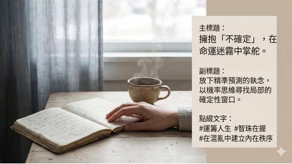 我們從一團混沌的「玄學亂象」出發,透過這個「算命方程式」,找到了一條通往「決策法則標準化」的道路。這本書告訴我們,在不確定性最高的領域裡,對「法則、數據、標準」的堅持,才是將運氣轉化為可控風險的唯一途徑。