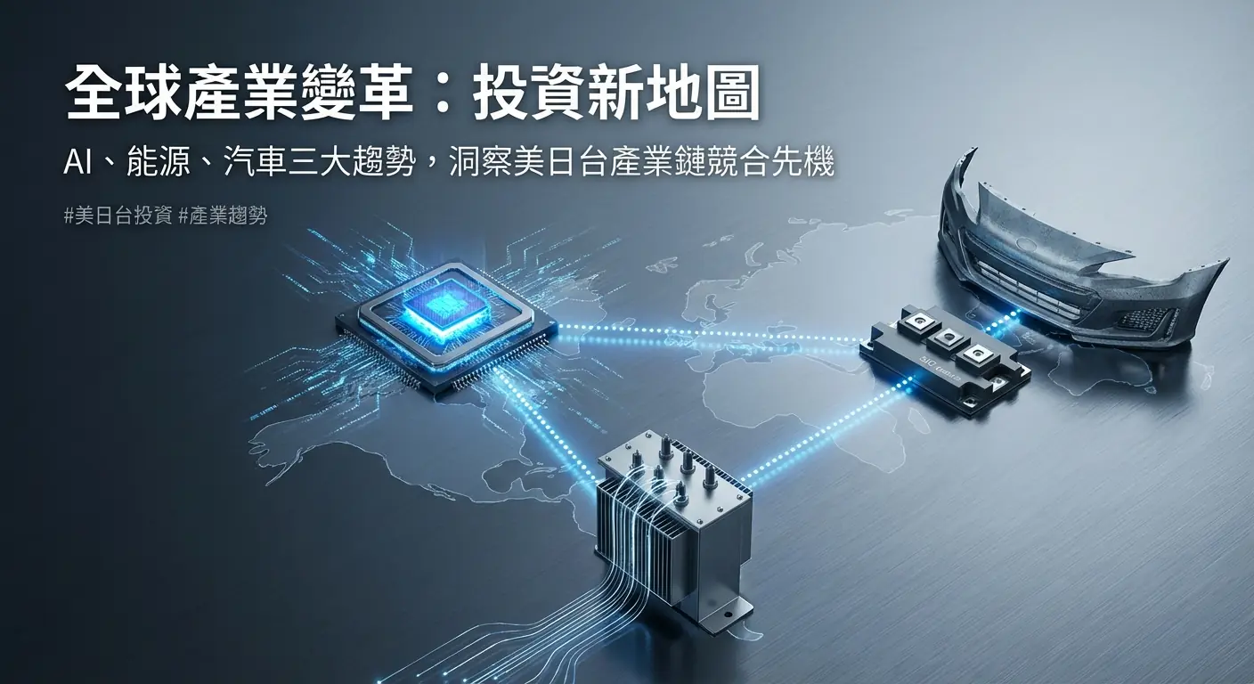 全球投資市場看似風雲變幻,昨日是AI晶片巨頭的股價一飛沖天,今日卻換成一家生產變壓器的傳統重電公司成為盤面焦點,而不遠處,一家製造汽車保險桿的廠商也悄悄地被法人納入雷達。這些看似毫不相關的事件,背後其實都指向了正在重塑全球產業版圖的三股巨大力量:人工智慧引發的算力革命、全球性的能源轉型壓力,以及地緣政治下的供應鏈重組。對於身處台灣的投資者而言,單純關注台股的漲跌已不足以應對未來的挑戰與機遇。唯有將視野拉高,看懂美、日、台在全球產業鏈中的競合關係,才能在這場變局中掌握先機。本文將深入剖析這三大趨勢下的關鍵產業,並透過對比美日台的龍頭企業,為投資者提供一份清晰的全球投資地圖。