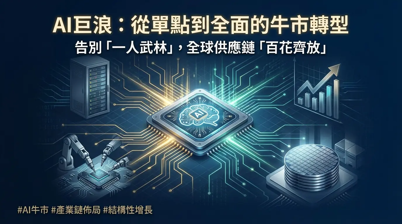 人工智慧(AI)的第二波巨浪,正以超乎市場預期的力道席捲全球,推動台灣加權指數以前所未見的速度衝破歷史新高。當投資人沉浸在指數不斷創高的喜悅中時,一個更深層次的問題浮現:這場由AI點燃的多頭派對,究竟是短暫的煙火,還是才剛剛進入中場的盛宴?更重要的是,過去由台積電一家公司獨撐大局的「一人武林」時代是否已經過去?答案,或許藏在全球產業鏈的結構性轉變之中。事實上,目前的市場正展現出一種截然不同的面貌——漲勢不再僅僅集中於少數AI巨擘,而是以一種更健康、更全面的姿態,向各個產業擴散。這不僅僅是資金的輪動,更是一場結構性的牛市轉型。本文將深入剖析這波AI熱潮的底層驅動力,並透過解構美國、日本與台灣在全球AI供應鏈中的獨特定位,為投資者描繪出一幅在資金輪動下的新投資地圖,挖掘下一階段的潛力所在。
