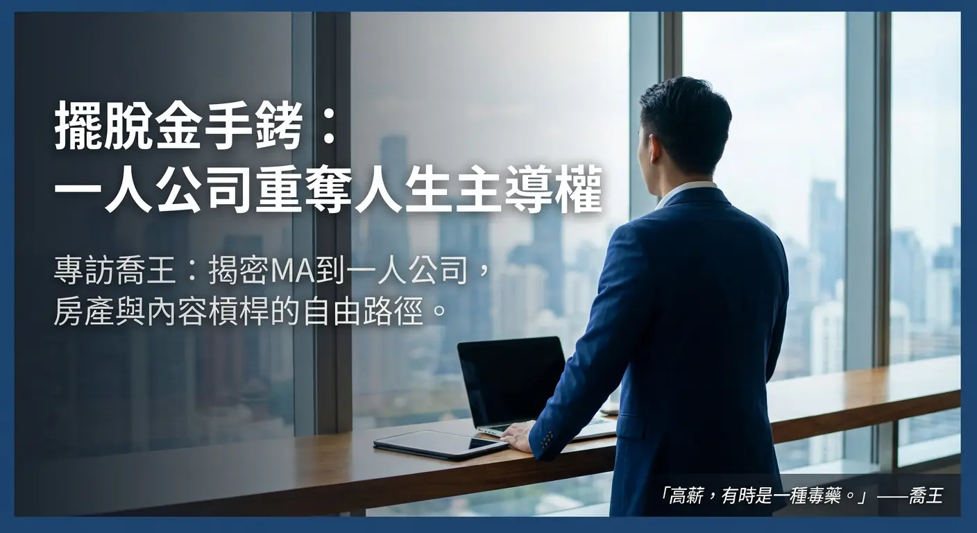 從銀行 MA 到自由工作者,他放棄的是社會定義的「成功路徑」,換來的是自己定義的「理想生活」。他證明了,創業不一定是要打造下一個獨角獸企業,也可以是透過精細的資產配置與個人品牌經營,打造一個讓自己活得舒服、有尊嚴的「一人公司」。