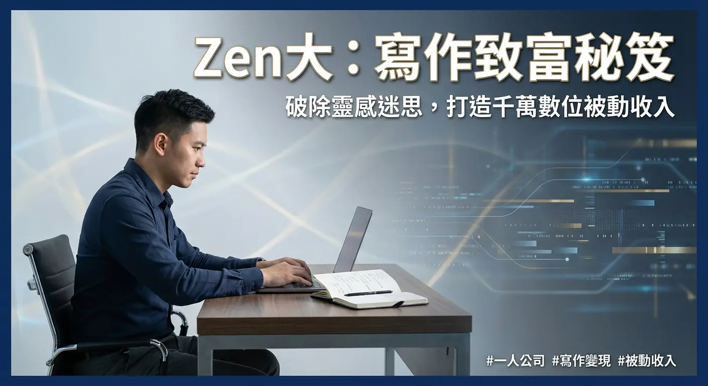 他是Zen大(王乾任),一位全職寫作超過二十年的「文字職人」。他的數據令人咋舌:至今已出版超過40本書,巔峰時期曾維持一天撰寫一萬字的驚人產出。更重要的是,他不僅僅是一位多產的作家,更是一位精明的創業者。他透過寫作這項核心技能,成功搭建出包含廣告、聯盟行銷、出版、演講、顧問以及數位課程的多元收入矩陣。