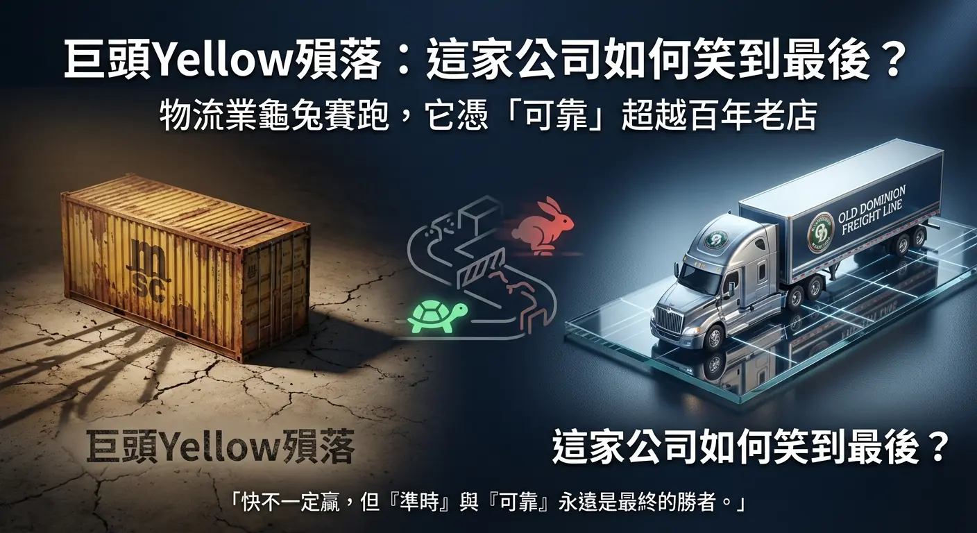 一場足以撼動美國供應鏈的風暴,在2023年夏天猛烈來襲。擁有近百年歷史、名列全美第三大的貨運巨頭Yellow公司,在留下超過3萬個失業職位與堆積如山的債務後,轟然宣告破產倒閉。這不只是一家公司的終結,更像是一頭巨鯨的倒下,其騰出的巨大市場空間,瞬間在美國的陸上經濟動脈中掀起了一場搶奪市佔的激烈戰爭。當許多人還在為Yellow的殞落感到震驚時,另一家公司卻早已悄然佈局,並在這場變局中成為最大的贏家。它的名字是Old Dominion Freight Line(下稱ODFL),一家數十年如一日,專注於提供頂級服務的貨運公司。這不是一個關於創新科技或顛覆性商業模式的傳奇故事,而是一場現代版的「龜兔賽跑」。在一個看似傳統、缺乏光環的產業裡,ODFL如何憑藉著近乎偏執的堅持,連續十多年蠶食市場,最終在百年老店倒閉的廢墟上,確立了自己難以撼動的王者地位?它的成功,不僅揭示了美國工業經濟的底層運作邏輯,更為身處台灣的投資者與企業主,提供了一堂關於長期價值與核心競爭力的深刻課堂。
